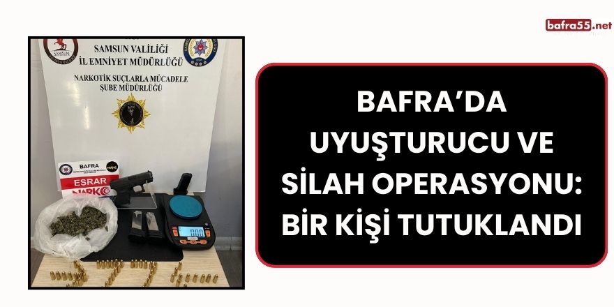 Samsun’un Bafra ilçesinde gerçekleştirilen operasyonda, uyuşturucu madde ve ruhsatsız silah ele geçirildi. Operasyon sonucunda F.G. isimli şahıs tutuklandı.