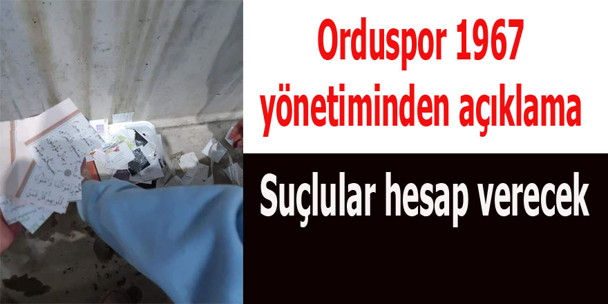 "Maçın 52. dakikasında konfeti atılmıştır. Orduspor tribünlerinden gelen herkesin bildiği ve katıldığı bu görsel etkinlikte ne yazık ki bu akşam oynadığımız maçta istenmeyen görüntüler oluşmuştur. Taraftar grubumuz tarafından konfeti parçalarında Kuran-ı Kerim sayfaları olduğu tespit edilmiş, bu bilgi tarafımıza iletilmiştir. Taraftar grubumuzun dini değerlerimize yapılan bu saygısızlığa karşı bu durumu gündeme getirmesi bir yana ayrıca konu hakkında da soruşturma başlatılması için emniyet güçlerine destek olmuşlardır. Şehrimize, takımımız üzerinden halkımızı kutuplaştırmaya çalışan bir kitlenin varlığı herkes tarafından bilinmektedir. Ordulu ve Ordusporlu olan herkesin, emniyet güçlerimiz tarafından olay sonuçlandırılana kadar sağduyulu olması gerekmektedir. Konunun incelenmesi ve açığa çıkartılmasında emniyet güçlerimizle birlikte hareket eden, her türlü bilgiyi emniyete ileten taraftarlarımıza, konunun yayılarak gündeme gelmesinde emeğe geçen halkımıza teşekkür ederiz. Yapılan her kötülüğe karşı iyilikle gitmeye devam edeceğiz."