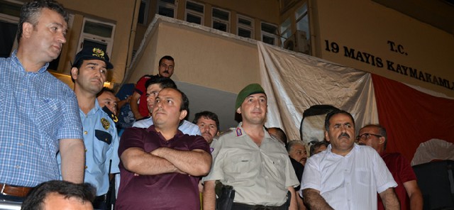 19 Mayıs İlçesinde çok sayıda vatandaş askeri kalkışmaya karşı tepki göstermek amacıyla hükümet konağı önünde toplandı.
