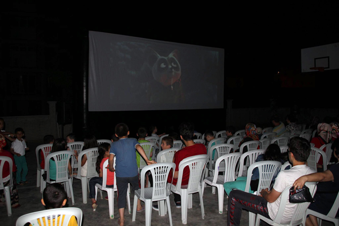 Alaçam'da 6 gün süre ile akşamları yapılacak olan açık hava sinema keyfi dün akşam Kung Fu Panda 3D animasyon filmi ile gösterimi başladı.