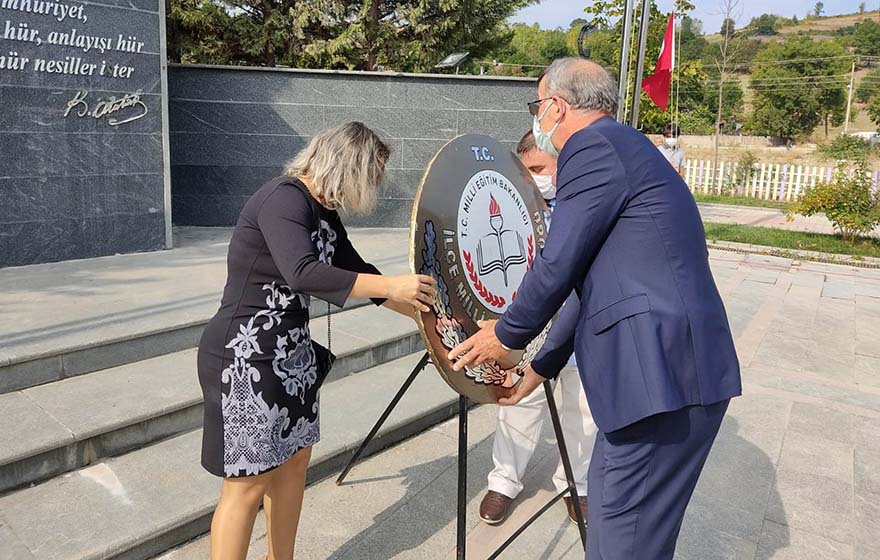 Alaçam ilçesinde 2021-2022 eğitim-öğretim yılı açılışı ve İlköğretim Haftası kapsamında İlçe Millî Eğitim Müdür Vekili Ömer Şener tarafından Cumhuriyet Meydanı Atatürk Anıtı'na çelenk sunuldu.