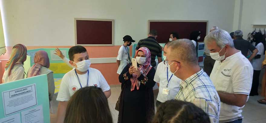 Samsun Alaçam Osman Tural İmam Hatip Ortaokulu'nda düzenlenen TÜBİTAK 4006 Bilim Fuarı'nda öğrenciler yaptıkları projeleri sergiledi.