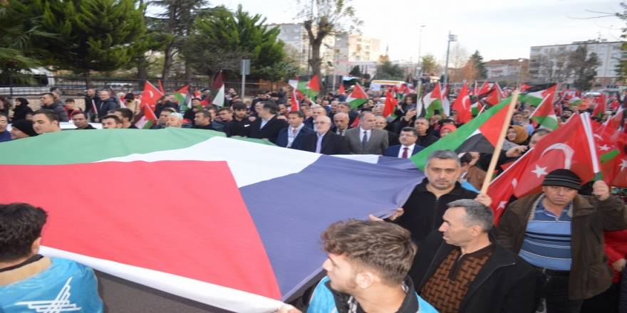 Samsun'un Bafra ilçesinde Filistin’e destek için yürüyüş yapan yüzlerce kişi "Katil İsrail" sloganları atıldı.
