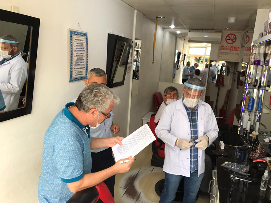 İlçe Sağlık Müdürlüğü ekipleri ile birlikte eş zamanlı gerçekleştirilen denetimlerde 58 Berber, Kuaför ve güzellik salonlarında denetleme yapıldı.