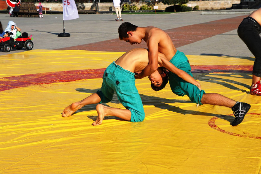 Bafra Kaymakamlığı İlçe Gençlik ve Spor Müdürlüğü tarafından düzenlenen 29 Ekim Cumhuriyet Kupası güreş turnuvası Bafra kent meydanında yapıldı