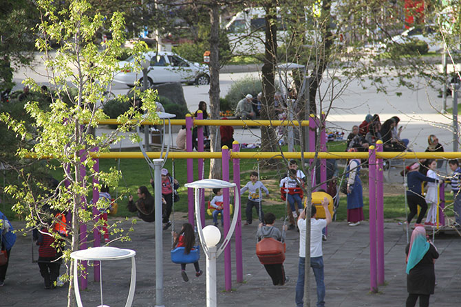 Çocuklarıyla birlikte Alparslan Türkeş Parkına gelen aileler, piknik yapıp parkta çocuklarını salıncaklara ve kaydıraklara bindirdi. Renkli görüntülere sahne olan parklarda oyun oynayan çocuklar güzel havanın tadını çıkarırken, anne ve babalar da adeta çocuklar gibi eğlendi. Parka gelen aileler ise “sıcak ve güzel havaları özlemiştik. Havayı güzel görünce çocuklarımız ve dostlarımızla birlikte buraya geldik.”