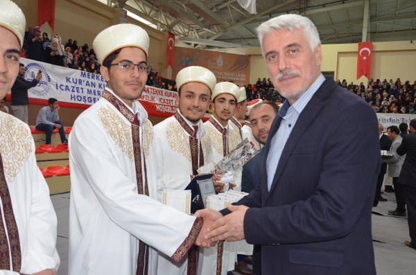 Bafra İlçe Müftülüğünce Kapalı Spor Salonu'nda düzenlenen hafızlık icazet merasiminde, ilçedeki Kur'an kurslarında hafızlık eğitimlerini başarı ile tamamlayan öğrencilere diplomaları verildi.