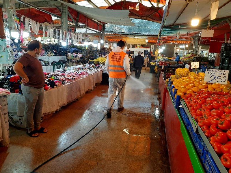 Öte yandan Bafra Belediyesi Temizlik İşleri Müdürlüğü ekipleri ilçe genelindeki başta pazar yerleri ve kamu binaları olmak üzere halkın yoğun olarak kullandığı alanlarda dezenfeksiyon çalışmalarını sürdürüyor