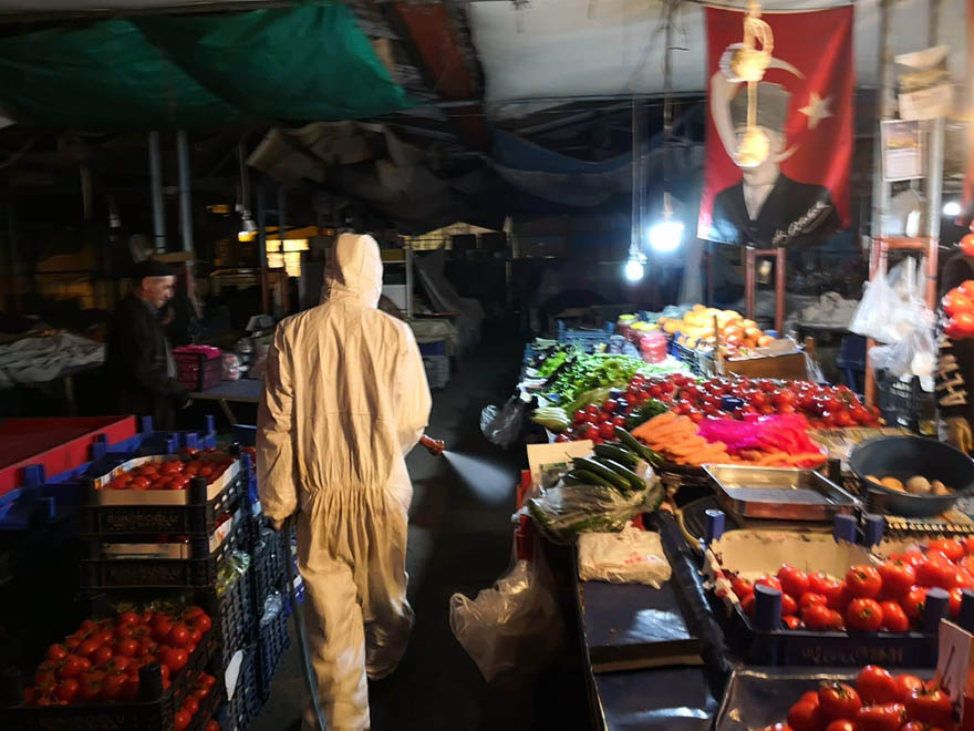 Temizlik İşleri Müdürlüğü koordinasyonunda yapılan uygulama ve çalışmalar kapsamında 11 Mart tarihinden bu güne kadar; 312 ibadethane, 63 resmi kurum ve kuruluş, 22 aile sağlık merkezi, 45 eczane, 50 fırın, 60 ATM, 2 pazaryeri, 255 resmi araç,10 park ve yeşil alan, 25 okul, 98 özel işletme ve esnaf, 19 belediye birimi ile 2 bin 70 cadde, sokak ve uzantılarında dezenfeksiyon çalışması gerçekleştirildi.