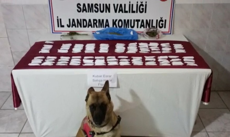 Samsun İl Jandarma Komutanlığı JASAT ve KOM Şube Müdürlüğü ekiplerince yapılan istihbari çalışmalar sonucunda Mevlana Mahallesi'nde B.D'ye (25) ait evde Ozon isimli narkotik köpeği ile yapılan aramada satışa hazır 120 paket uyuşturucu ele geçirildi. Olayla ilgili B.D. jandarma ekiplerince gözaltına alındı.