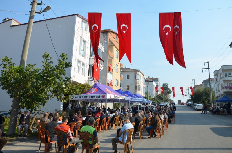 Bafralı şehit Uzman Onbaşı Mutlu Can Meşeci için baba evi önünde mevlidi şerif programı düzenlendi.