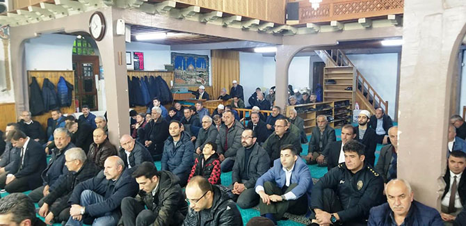 Samsun`un Bafra ilçesinde Emniyet Teşkilatının 174. Kuruluş yıldönümü etkinlikleri çerçevesinde yapılan şehitler için mevlid-i şerif programı ve MHP İlçe Teşkilatı tarafından Alparslan Türkeş`in ölüm yıldönümü için düzenlenen mevlid- i şerif programı Büyük Camide düzenlendi.