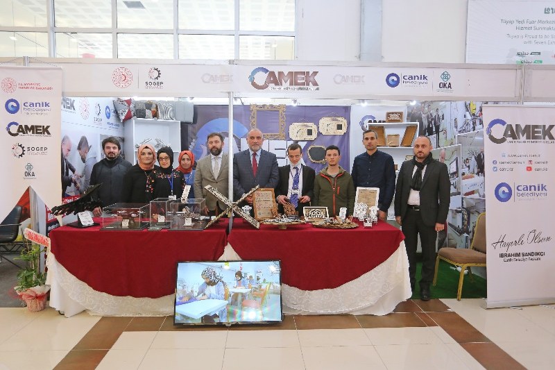 Canik Belediyesi Meslek Edindirme Kursları (CAMEK), Samsun Mobilya Dekorasyon Fuarı’nda sergilediği ahşap ürünleriyle katılımcıların ilgi odağı oldu.