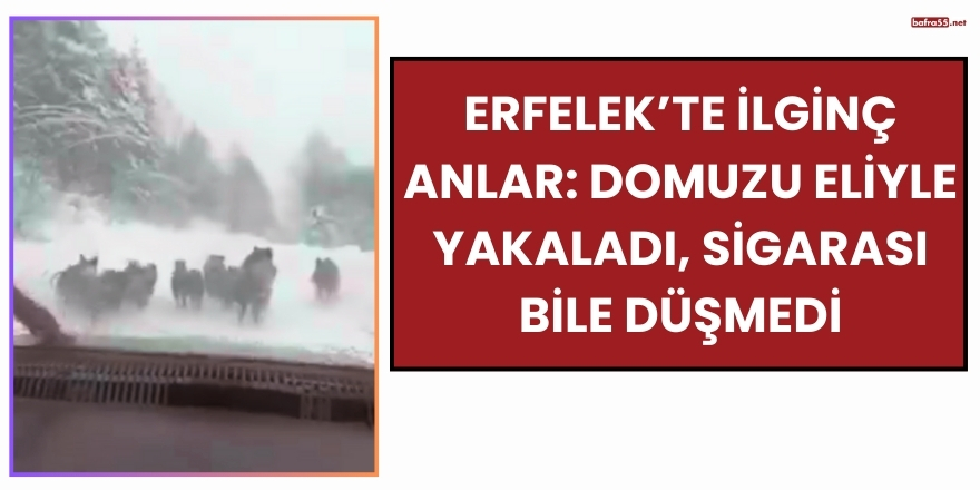 Sinop’un Erfelek ilçesine bağlı Avlağasökü köyünde yaşanan ilginç olay görenleri şaşırttı. Şenel Yılmaz isimli vatandaş, köy yolunda domuz sürüsüyle karşılaştı. Araçtan inen Yılmaz, karda kaçmaya çalışan domuzlardan birini elleriyle yakaladı.