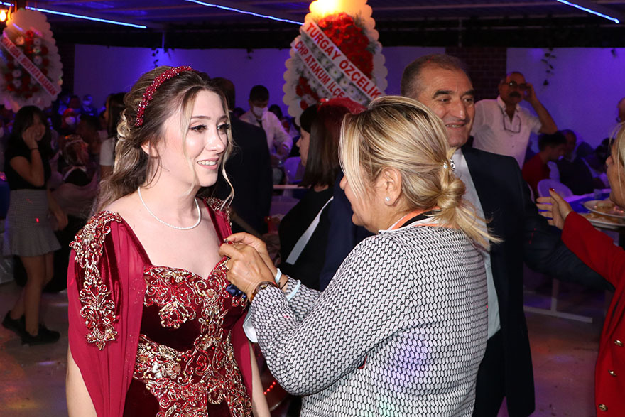 Kına gecesine katılan CHP Samsun Milletvekili Neslihan Hancıoğlu Berfin ‘i tebrike ederek hediyesini takdim etti.