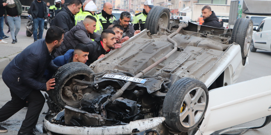 Samsun'da direksiyon hakimiyetini kaybeden sürücü yan yola daldı. Refüje çarparak takla atan sürücü hurdaya dönen otomobilden sağ çıktı.