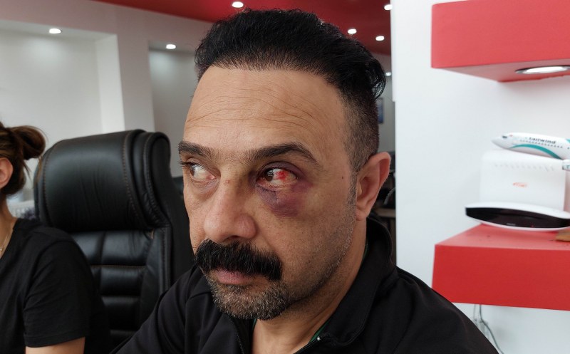 Eşi ile birlikte çalışan Wısam Saad Hammood Al Khafajı'ya iş yerinde yumruklu saldırı ise güvenlik kamerasınca kaydedildi. Yumruk darbesi sonucu yüzünden yaralanan Iraklı şahıs hastaneye kaldırılarak tedavi edildi.