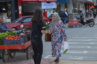 "Kadına Şiddete Hayır" dediler, kadınlara gül dağıttılar