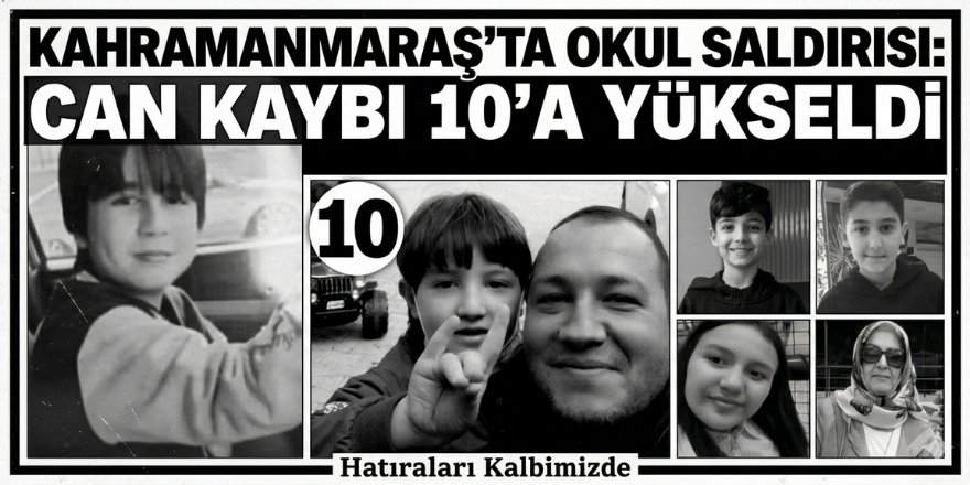 Kahramanmaraş’ta Onikişubat ilçesi Haydarbey Mahallesi’nde bulunan Ayser Çalık Ortaokulu’nda meydana gelen silahlı saldırının ardından acı bilanço ağırlaştı. Olayda hayatını kaybedenlerin sayısı 10’a yükseldi.