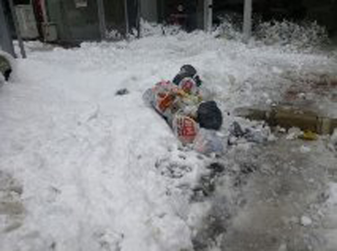 Kar yağması ile birlikte toplanmayan çöpler, katı atık birikintileri kent çevrelerinde çok daha geniş alanlar kaplıyor. Bu çöp birikintileri hava, su ve toprak kirliliklerine yol açan önemli bir çevre sorununa dönüşüyor. Cadde ve sokaklarda plastik, cam ve kağıt çöpler için geri dönüşüm kutularının olmaması da dikkat çekiyor. Çöplerin oluşturduğu görüntü kirliliği rahatsız edici çöp toplama konusundaki çalışmalar yetersiz. Hem koku hem de görüntü kirliliği oluşturuyor.
