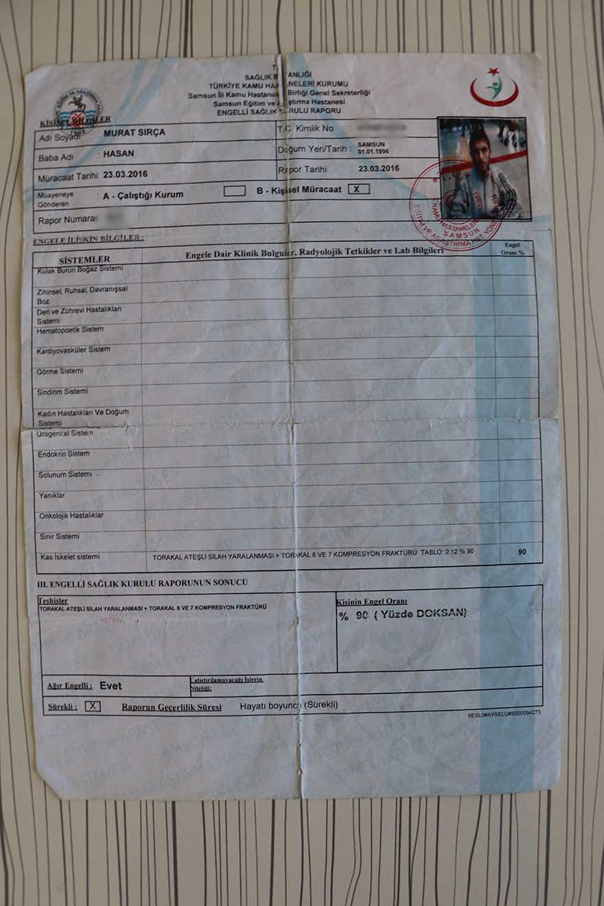 2015 yılında bir eğlence merkezinde garson olarak görev yaparken bir anda kendisini silahlı çatışmanın ortasında bulan Murat Sırça’nın (25) omuriliğine kurşun saplandı. Olaydan sonra 17 gün yoğun bakımda yatan Murat Sırça’nın daha sonra göğsünden altı felç kaldı. Genç yaşında sadece göğsünün üst kısmını kullanabilen Sırça için doktorlar bir umut olduğunu söyledi. Tekrar yürüyebilmenin hayalini kuran genç, tedavi masraflarını karşılaması için yetkililer ve hayırseverlere seslendi. Ailesi ise Murat Sırça’dan dolayı eli kolu bağlı durumda bulunuyor. Birçok ihtiyacı ailesi tarafından giderilen Murat Sırça, yürüdüğü günlerin hayalini kurarak yaşıyor.
