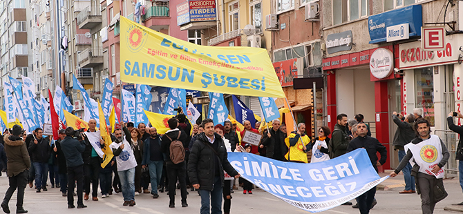 Samsun ve çevre illerden gelen KESK'e bağlı sendikaların üyeleri, İlkadım ilçesi Lise Caddesi'nde toplandı.