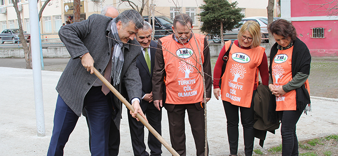 Bafra'da Tema Vakfı Bafra Şubesi ve Bafra Kızılırmak İlkokulu tarafından okul bahçesine fidanı dikimi yapıldı.