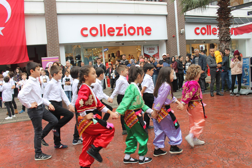 Farklı yaş gruplarından çocukların gösteriler sergilediği etkinlik şeklinde düzenledi. Uğur Okulları Bando gösterisi, Zeybek Gösterisi, Mefen Eğitim Kurumlarının Bando eşliğinde korosu, Hasköy Cumhuriyet İlkokulu Minik Bandocuları ve Halk Danslarının Sincap Anaokulunun miniklerinin Türkiyem Ponpon Dansı ve Lolipop Ritim Çalışması ile büyük beğeni alırken Cumhuriyet Bayramı’na yakışır, AVM’de coşkulu bir Cumhuriyet Bayram kutlaması gerçekleşti.
