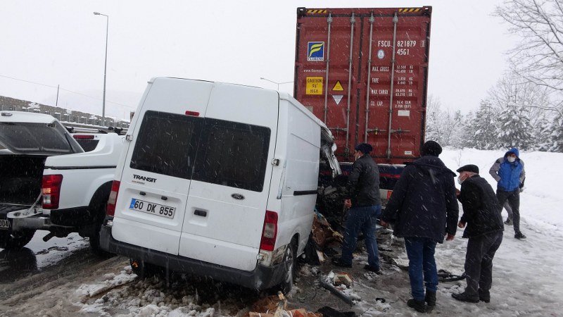 Samsun'da patlayıcı madde yüklü minibüsün kardan kayarak park halindeki tırlara arkadan çarpması sonucu meydana gelen trafik kazasında 1 kişi hayatını kaybetti, 1 kişi yaralandı.