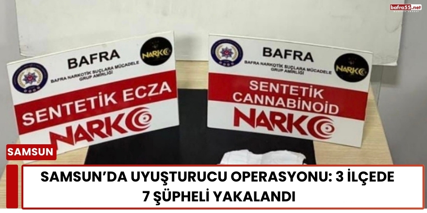 Samsun’da polis ekipleri tarafından uyuşturucu madde ticareti ve kullanımının önlenmesine yönelik gerçekleştirilen operasyonlarda 3 ilçede 7 şüpheli yakalandı.