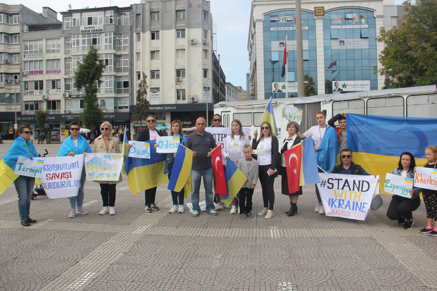 Samsun Cumhuriyet Meydanı’nda toplanan Karadeniz Ukraynalılar Derneği üyeleri son zamanlarda Rusya’nın Ukrayna’ya karşı gerçekleştirdiği füze saldırılarını protesto etti.