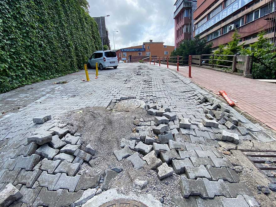 Zonguldak’ta Mithatpaşa Mahallesi’nde sağanak yağış nedeniyle Uzun Mehmet Göğüs ve Meslek Hastalıklarına çıkan parke yol kullanılamaz hale geldi.