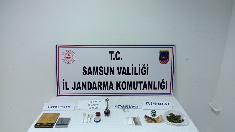 Olay, Samsun'un Atakum ilçesi Yeni Mahalle'de meydana geldi. Edinilen bilgiye göre, Samsun İl Jandarma Komutanlığı Kaçakçılık ve Organize Suçlarla Mücadele (KOM) Şube Müdürlüğü ekipleri ile Atakum İlçe Jandarma Komutanlığı ekipleri 'uyuşturucu madde ticareti yaptığı' iddia edilen ve tapuda memur olarak çalıştığı öğrenilen S.O.'yu (40) bir miktar kubar esrar ve metamfetamin maddesi, 2 adet hassas terazi ve uyuşturucu içme aparatları ile birlikte gözaltına aldı. S.O. 'uyuşturucu ticareti yapmak' suçundan bugün Samsun Adliyesine sevk edildi.