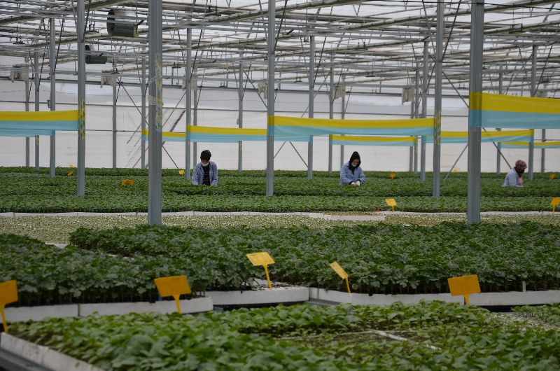 Bafra Organize Sanayi Bölgesi’nde(OSB) Japonlara tahsis edilen 288 bin metre karelik alanın 23 bin metre kare alana kurulan seralarda aşılı ve düz olacak şekilde tüm sebze fidelerinin yetiştiriliyor.