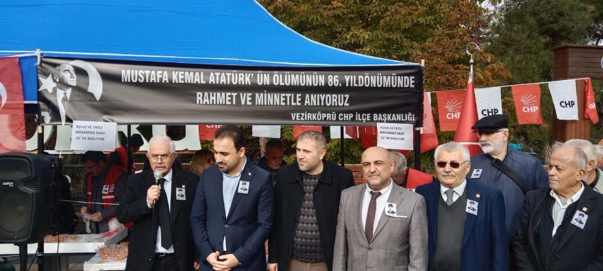 Gazi Mustafa Kemal Atatürk’ün ölüm yıldönümü nedeniyle CHP Vezirköprü İlçe Başkanlığı, Köprülü Mehmet Paşa Parkı’nda vatandaşlara lokma ikramında bulundu. CHP İlçe Başkanı Nazım Kale, "Cumhuriyetimizin ve partimizin kurucu Büyük Önder Mustafa Kemal Paşa’yı ölümünün 86.yılında saygıyla, rahmetle ve minnetle anıyoruz. Ruhu şad olsun" dedi.