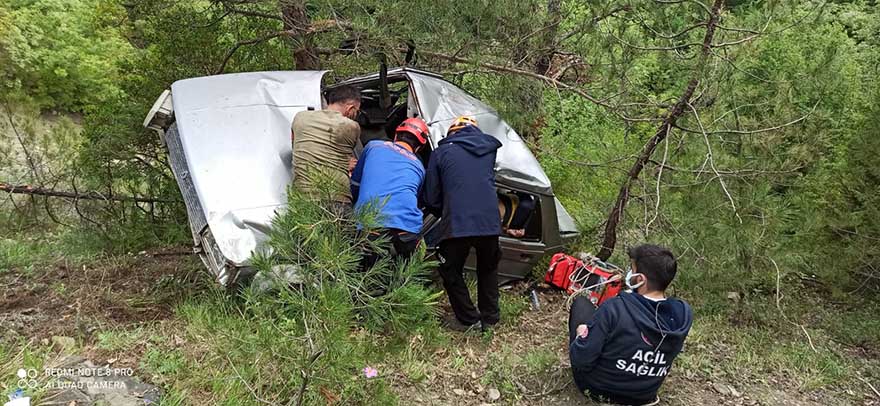 Virajı alamayan otomobil 80 metrelik uçurumdan yuvarlandı!