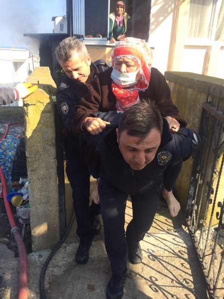 Yangın, dün Samsun'un Atakum ilçesi İncesu Yalı Mahallesi'nde meydana geldi. Edinilen bilgiye göre, Rıza Kaya'ya ait evin kilerinde elektrik kontağından yangın çıktı. Olay polise ve itfaiye ekiplerine haber verildi. Atakum İlçe Emniyet Müdürlüğünde görevli Komiser Yardımcısı Dursun Ali Şekerci ve polis memurları Mehmet Parlak ve Yakup Şahin yangın yerine kısa sürede intikal etti. Evde bulunan ve yaşlılığından dolayı yürüyemeyen Rıza Kaya'nın kayınvalidesi 93 yaşındaki Mevlüde Yılmaz, itfaiye gelmeden önce polisler tarafından kurtarıldı. Polis memuru Mehmet Parlak, yaşlı kadını sırtına alarak evden güvenli bir yere taşıdı.
