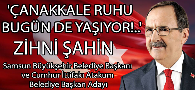 Samsun Büyükşehir Belediye Başkanı Zihni Şahin, "Çanakkale Zaferi, milletimizin yazdığı en büyük kahramanlık destanlarından birisidir. O ruh bugün de yaşıyor" dedi.